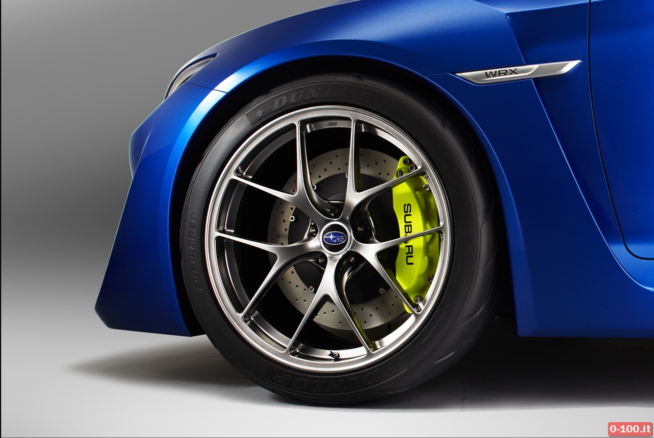 La WRX è lunga 452 cm, larga 189 e alta 139 cm, con un passo di 276 cm. E’ equipaggiata, di serie, con pneumatici Dunlop da 245/40 ZR 20.