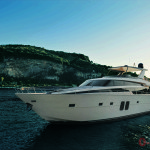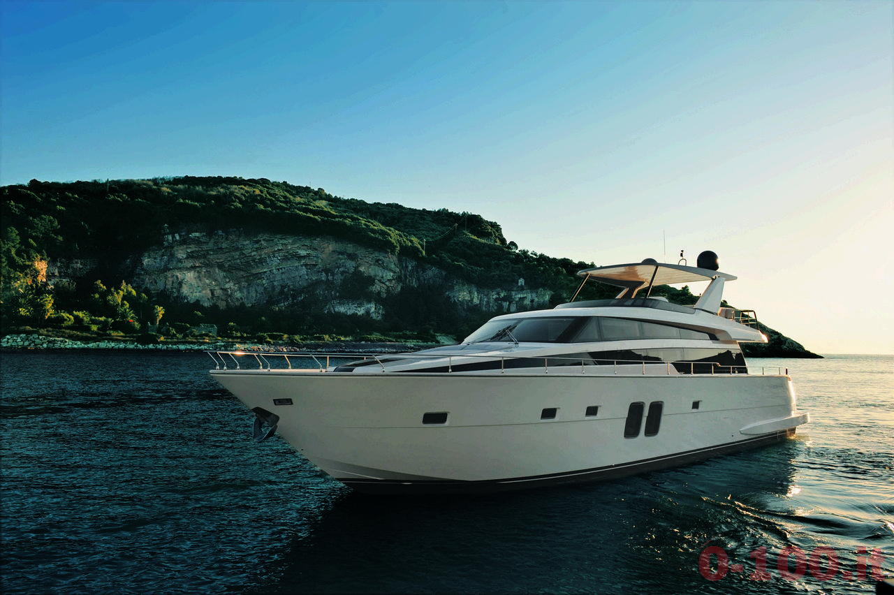 Sundiro SY 70, yacht dalla linea pulita e lineare con finestrature continue, evoca, in alcuni particolari, tratti tipici della sua “parentela” con Sanlorenzo.