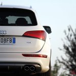 All’esterno cambia poco. Difficile riconoscere da lontano un’SQ5, specialmente nella vista frontale se non fosse per la calandra ad effetto smaltato più vistosa e la placchetta “SQ5”. E’ pur vero che questo esemplare, con i cerchi da 21” e le larghe gomme da 255/45, “potrebbe” già indicare qualcosa di diverso. Ma la vera sorpresa è nel posteriore e in quei quattro stupendi scarichi gemellati e di forma leggermente ellittica, indiscutibilmente eleganti anche su un’auto del genere.
