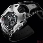 CAVALIERE DEL TEMPO. URWERK PRESENTA L’UR-105M, REALIZZATO SU UNA CASSA IN TITANIO PROTETTO DA UN’ARMATURA D’ACCIAIO. ALL’INTERNO L’INNOVATIVO MOVIMENTO CHE PRODUCE UN ECCITANTE E ORIGINALE NUOVO SISTEMA DI LETTURA DELL’ORA, CON DISCHI CHE DANZANO SUL QUADRANTE.