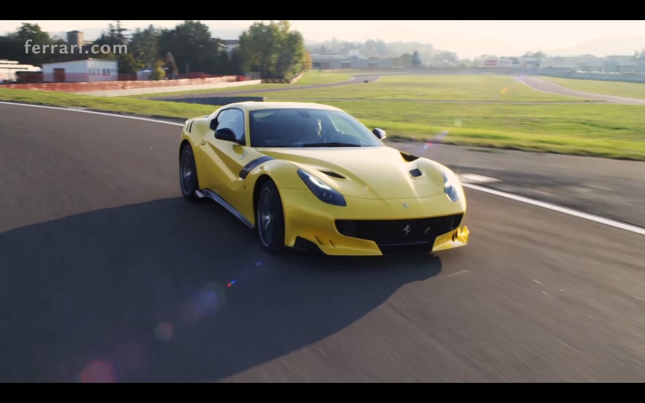 Si comincia con riprese statiche sulle burrose forme della carrozzeria, maestosa nel suo giallo possente e vistoso. Dall’irreale ripresa sui volumi, esattamente simili al nostro sguardo che accarezza quelle lamiere così sexy, il video si sposta sulla pista di Fiorano dove l’F12tdf viene guidata al limite regalandoci grandi emozioni tra il suono violento del V12 e i grandiosi sovrasterzi perfettamente controllati.