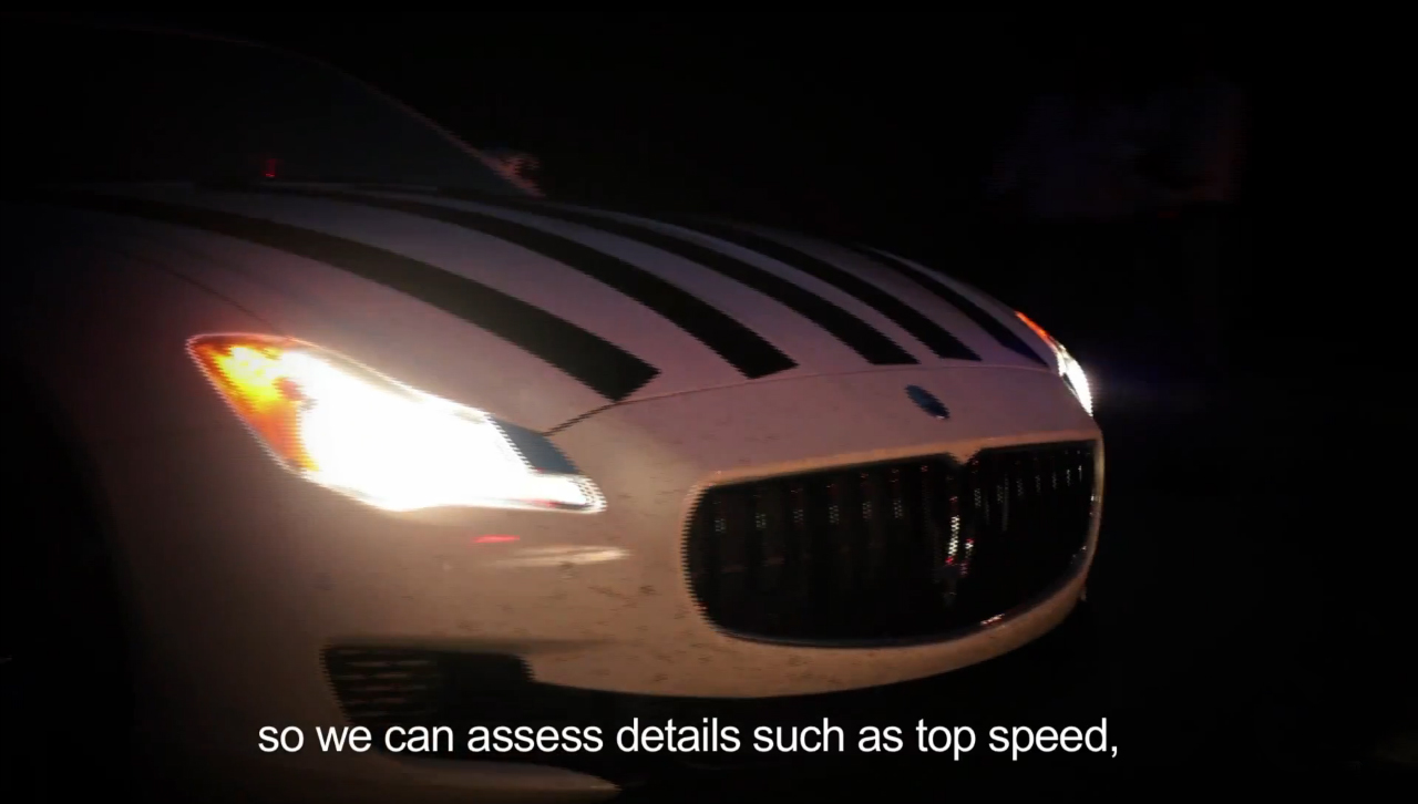 Come ci racconta il capo dei collaudatori del Tridente, la nuova Maserati Quattroporte, proverà la velocità massima e la rombosità di scarico. Inoltre, poiché il nuovo modello è privo di montanti, verranno effettuati alcune misurazioni per capire i fruscii sulla carrozzeria alle alte velocità.