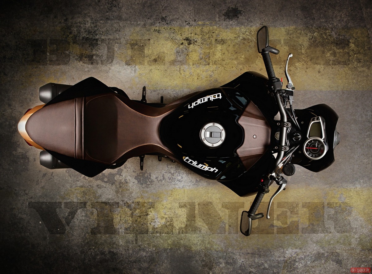 La Vilner Custom Bike Bulldog è più massiccia e aerodinamica rispetto alla Speed Triple anche se le modifiche riguardano solo il lato estetico.