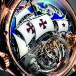 Il veliero presenta una ricchezza di dettagli sia a livello di sartiame sia di funi grazie al micro taglio e all’incisione a mano. Le vele, decorate con la famosa croce rossa (sostituita su una di loro dalla piccola stella di Zenith), sono realizzate in smalto cloisonné.