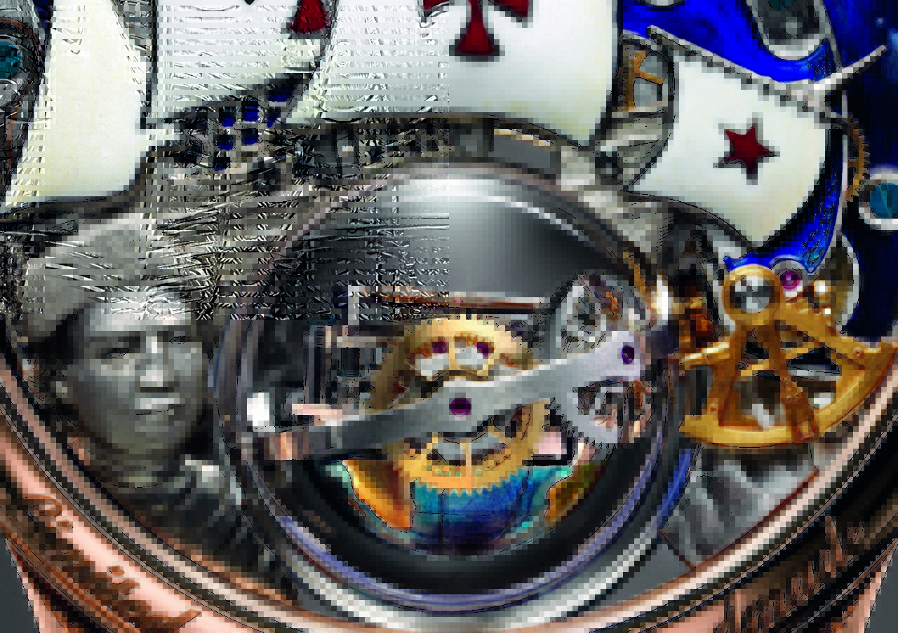 I migliori esperti di mestieri d’arte della Manifattura hanno dato vita, con l’aiuto di un sofisticato sistema di applicazioni in oro fissato al movimento, a un’incredibile miniatura in rilievo a ricordo delle imprese del famoso esploratore genovese.