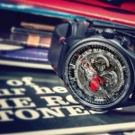Il display scheletrato esibisce lancette che evocano le chitarre elettriche Fender Telecaster degli Anni 50 e indici delle ore nichelati luminescenti.
